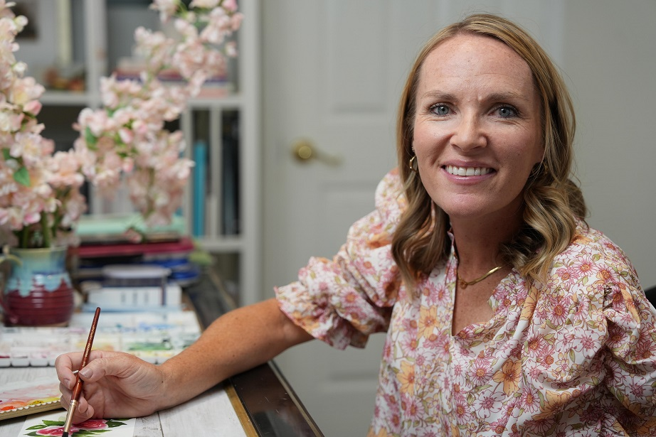 “Brittney Hart Nielsen is a Salt Lake City–based watercolor artist with a background in Math Education and an Art degree from Utah State University. Raised by professional artist Laurel Hart, she grew up surrounded by beautiful art and fully embraced watercolor in 2020. She now sells her work and teaches classes, helping others discover their inner artist, while balancing life as a wife and mom of five.”