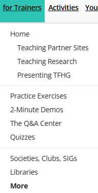 - Teaching Research: This opens the Training with Guided Learning Videos page, which was added to the site a few weeks ago.