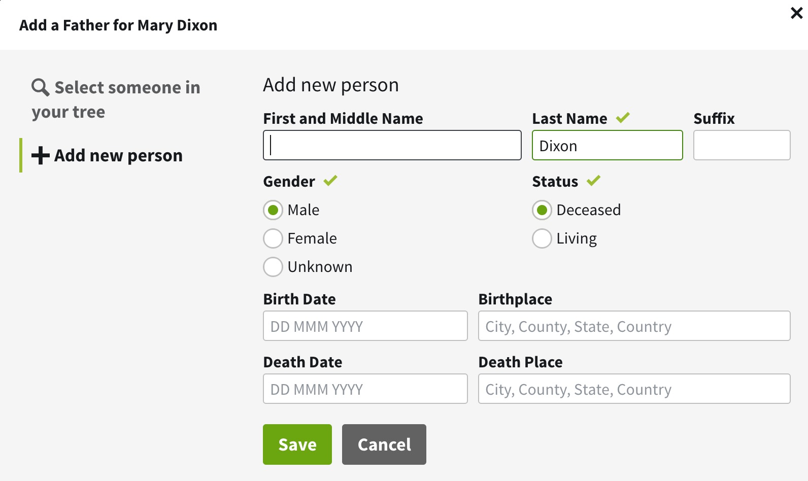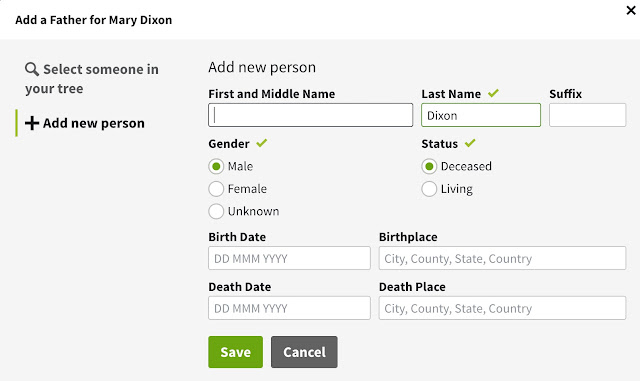 In this post, I have primarily focused on English language names. If I were to branch out and start analyzing names as they are used and as they appear in other languages, then entire issue becomes extremely more complicated. I am certain that many of the dead end or brick wall situations encountered by genealogists are based on names that have not be recorded accurately or have been indexed incorrectly. This is not just a simple matter of transcribing names incorrectly or incompletely, it is also a reflection on the basic assumptions we make based on Western European (English) genealogical forms and categories. You can see this in the Ancestry.com form shown above where the instructions ask for a “First and Middle” name and give space for only a “Last Name.” In addition, the Ancestry form has omitted a prefix or a title.