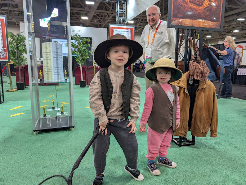 Bob Taylor and Bob Ives, co-founders of The Family History Guide, go Indiana Jones style at the booth