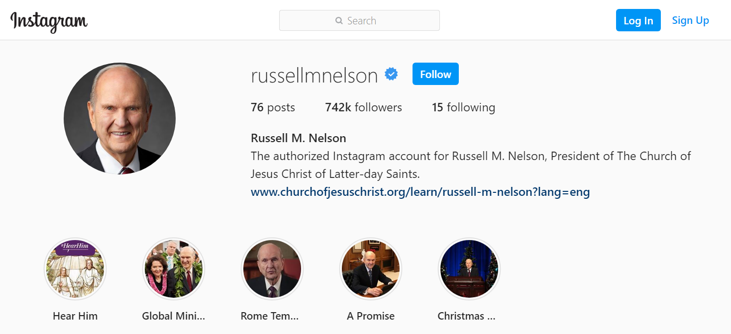 General authorities and general auxiliaries for the church are becoming increasingly involved by posting to their official Facebook and Twitter pages. See LDS Church leaders share testimonies of Jesus Christ on social media, President Nelson encourages Latter-day Saints to Share joy of the Savior, and LDS Church President Russell M. Nelson on Instagram, possibly oldest user on app - Russell M. Nelson (@russellmnelson)