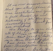 Write or audio-record your testimony of the plan of salvation and how you have been blessed by the priesthood of God. Write about your ancestors and what they have given you.