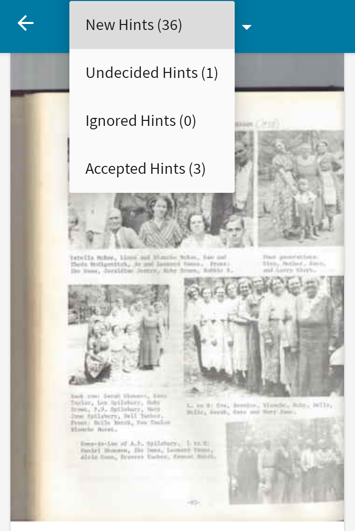 Hints are pieces of information about records, photos, stories, etc. for persons in your tree.